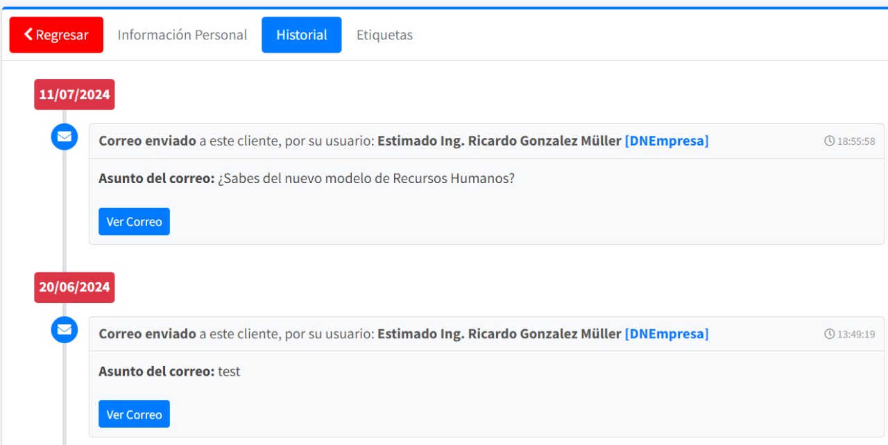 Si, los usuarios pueden registrar las diferentes interacciones con los clientes, por ejemplo: Correos, visitas, llamadas, redes sociales, facturación en linea, cumplir requerimiento legal.